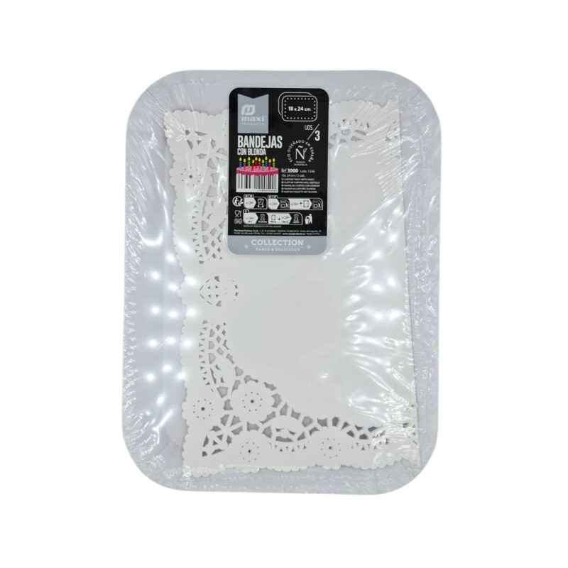 BANDEJAS CON BLONDA. BLANCAS. 18X24CM. (3u. X 12paq.)