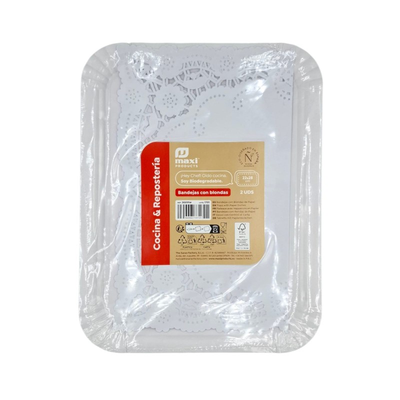 BANDEJAS CON BLONDA. BLANCAS. 22x28CM. (2u. X 12paq.)
