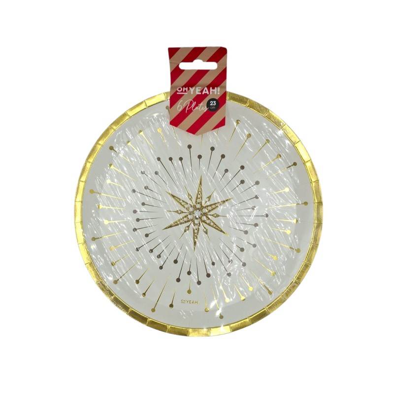 PLATO LLANO BLANCO Y DORADO STAR. 23cm. 6u.