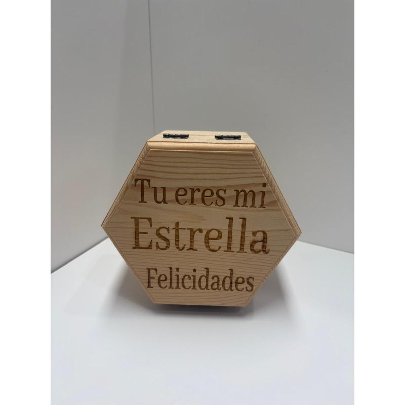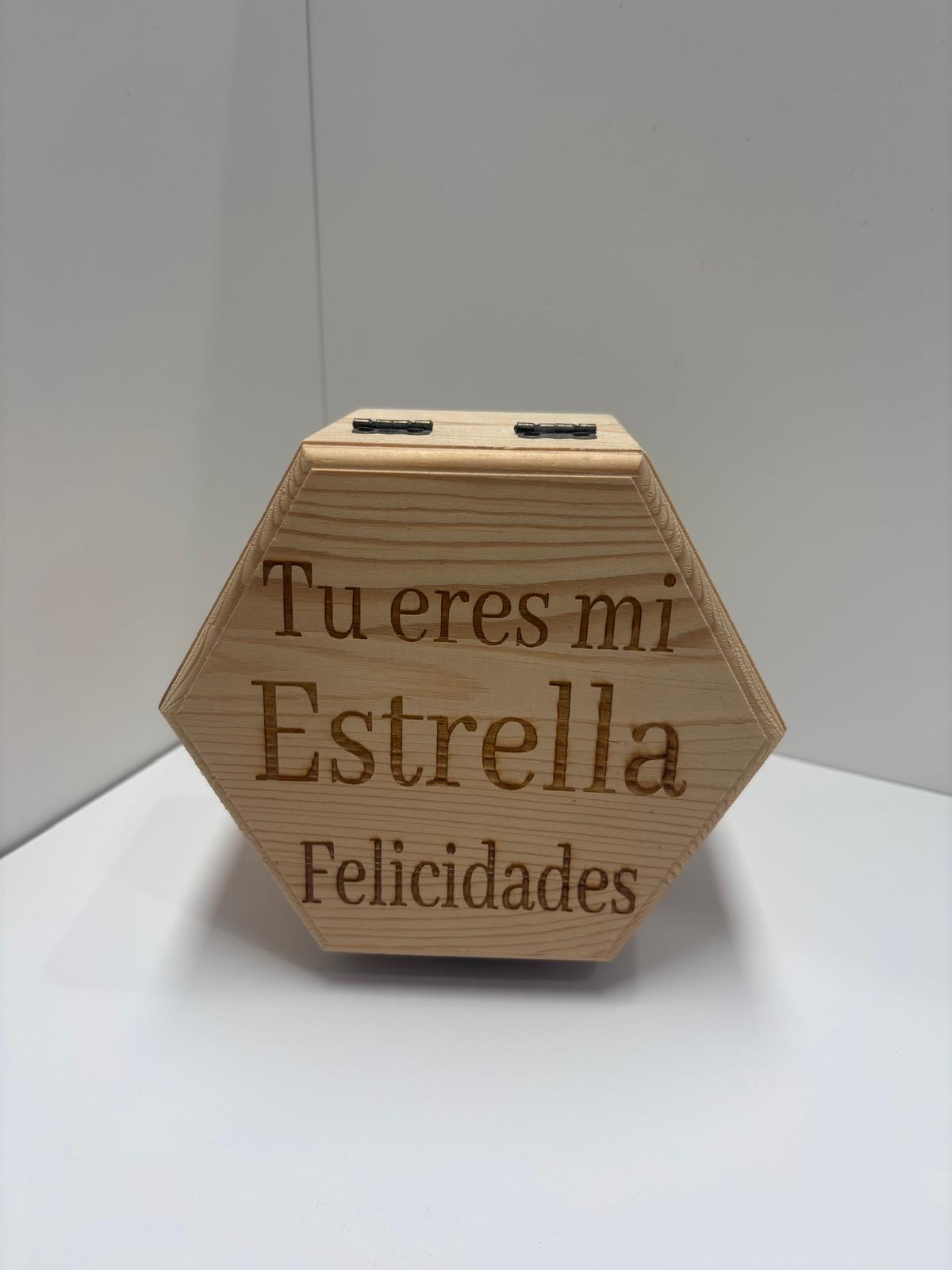 Cajita de madera hexagonal para guardar el regalo de cumpleaños que tengas preparado.En el precio está incluido el envoltorio.Realizamos envíos a toda la península (Almería, Cádiz, Córdoba, Granada, Huelva, Jaén Málaga, Sevilla, Huesca, Teruel, Zaragoza, Asturias, Cantabria, Albacete, Ciudad Real, Cuenca, Guadalajara, Toledo, León, Ávila, Burgos, León Palencia, Salamanca, Segovia, Soria, Valladolid, Zamora, Barcelona, Girona, Lleida, Tarragona, Badajoz, Cáceres, Galicia, A Coruña, Lugo Ourense, Pontevedra, Madrid, Madrid, Murcia, Navarra/Nafarroa, La Rioja, Alicante, Castellón, Valencia, Álava, Guipúzcoa, Vizcaya)