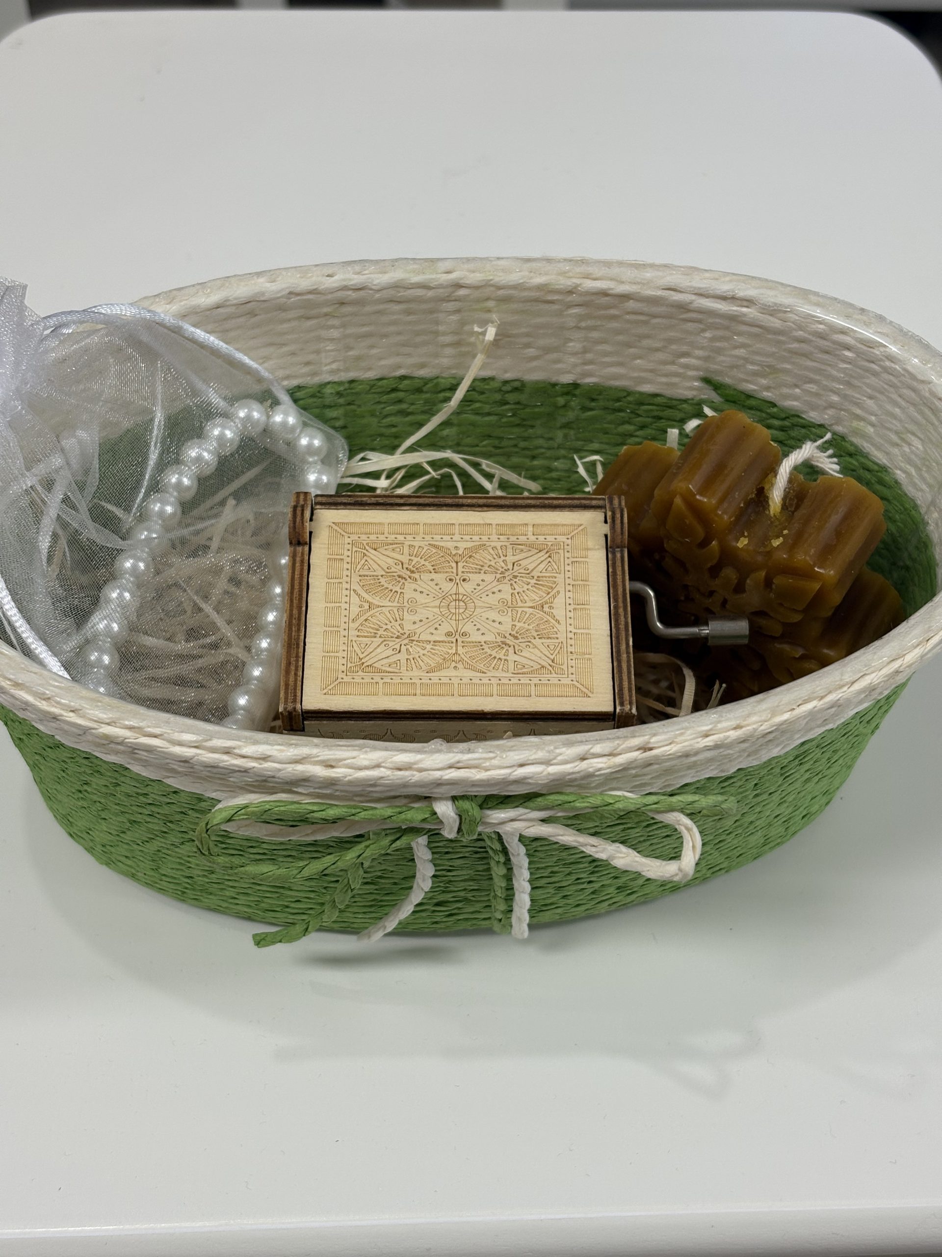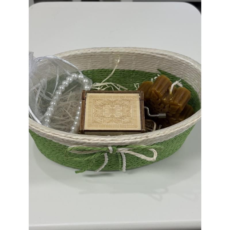 Para hacer un detalle en Navidad algo más sencillo pero igual de especial os ofrecemos esta cestita de mimbre en color verde con 3 detalles muy especiales: una velita artesanal de miel con forma de copo de nieve, una pulsera de perlitas y una cajita de música.Realizamos envíos a toda la península (Almería, Cádiz, Córdoba, Granada, Huelva, Jaén Málaga, Sevilla, Huesca, Teruel, Zaragoza, Asturias, Cantabria, Albacete, Ciudad Real, Cuenca, Guadalajara, Toledo, León, Ávila, Burgos, León Palencia, Salamanca, Segovia, Soria, Valladolid, Zamora, Barcelona, Girona, Lleida, Tarragona, Badajoz, Cáceres, Galicia, A Coruña, Lugo Ourense, Pontevedra, Madrid, Madrid, Murcia, Navarra/Nafarroa, La Rioja, Alicante, Castellón, Valencia, Álava, Guipúzcoa, Vizcaya).