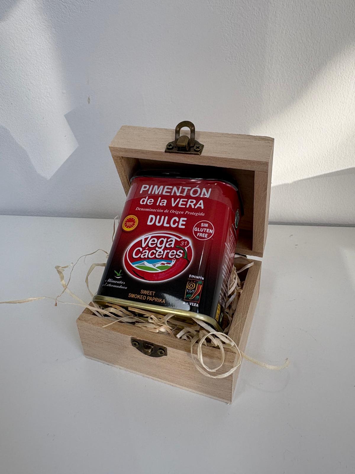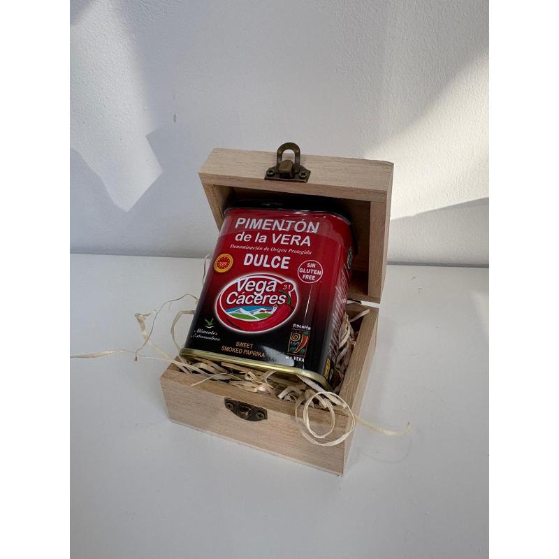 Un joyero siempre es un detalle útil y bonito que todos utilizamos, pero si le añadimos un toque original con una lata tradicional de pimentón de la vera dulce el resultado es maravilloso.El pimentón de la vera dulce sorprenderá a cualquier amante de la comida gourmet. Con un peso neto de 75g.Por eso te ofrecemos este joyero de madera de pino de 8'5 x 8'5cm grabado en láser personalizado con los datos del evento.En el precio está incluido la presentación (envoltorio y etiqueta personalizada del evento) y el grabado.Realizamos envíos a toda la península (Almería, Cádiz, Córdoba, Granada, Huelva, Jaén Málaga, Sevilla, Huesca, Teruel, Zaragoza, Asturias, Cantabria, Albacete, Ciudad Real, Cuenca, Guadalajara, Toledo, León, Ávila, Burgos, León Palencia, Salamanca, Segovia, Soria, Valladolid, Zamora, Barcelona, Girona, Lleida, Tarragona, Badajoz, Cáceres, Galicia, A Coruña, Lugo Ourense, Pontevedra, Madrid, Madrid, Murcia, Navarra/Nafarroa, La Rioja, Alicante, Castellón, Valencia, Álava, Guipúzcoa, Vizcaya.